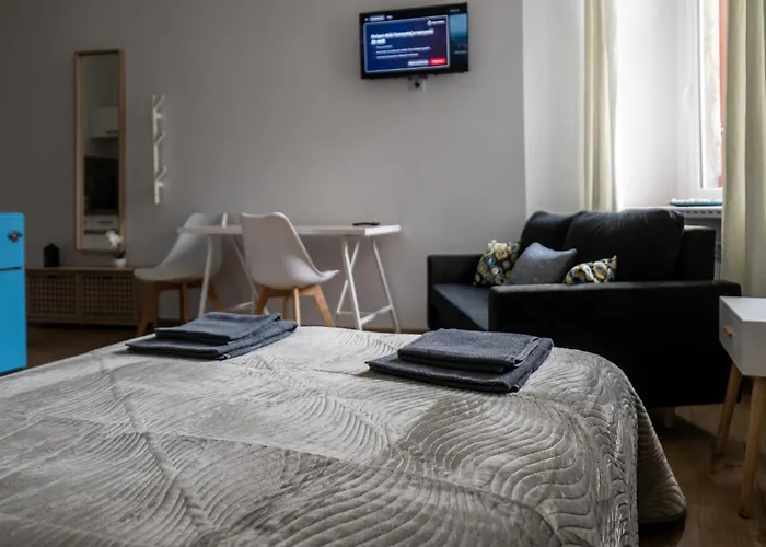Para aproveitar as suas ferias em Łódź, fique no o Summer Breeze Studio Łódź de 21 m², que está a uma distância de aproximadamente 10 minutos a pé do Moinho do Padre e 1.7 km de Gande Teatro de Lodz.